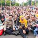 Presiden Prabowo tampak mengenakan setelan safari berwarna krem saat bersiap menaiki helikopter. Sebelum berangkat, Presiden terlebih dahulu menyalami masyarakat yang berdiri berjejer di sepanjang jalan menuju helipad. Ia juga menyempatkan diri menyalami sejumlah pejabat daerah yang hadir.
