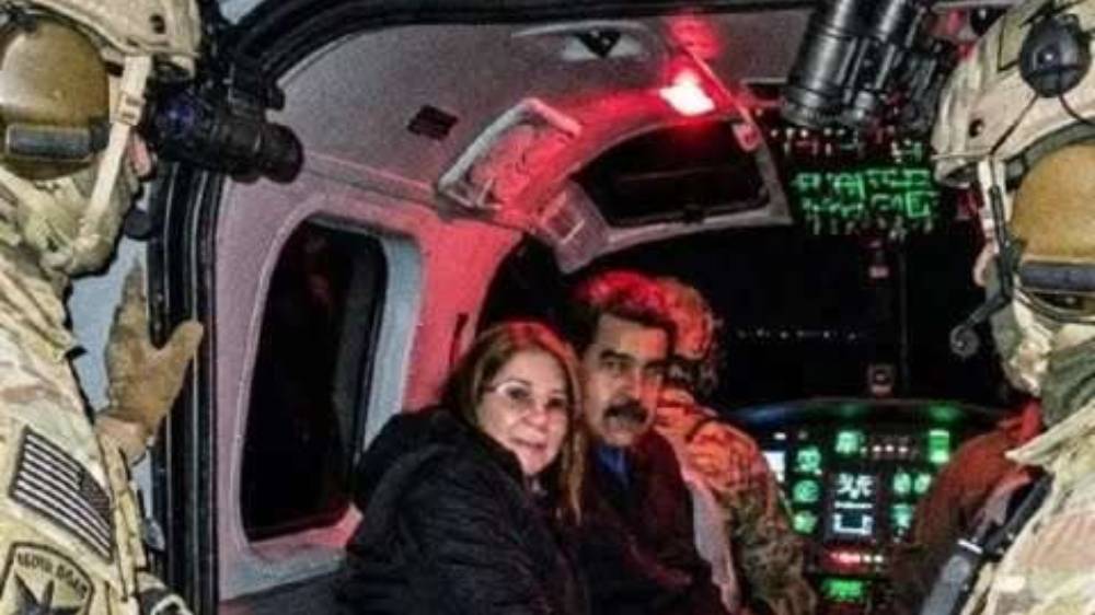 Presiden Venezuela Nicolas Maduro dan istri, Cilia Flores saat ditangkap pasukan Militer AS pada Sabtu (3/1/2026) dini hari (Foto: Akun X @theroelynnstone)