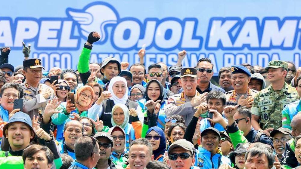 Dalam sambutannya, Gubernur Khofifah Indar Parawansa menyampaikan terima kasih kepada jajaran kepolisian dan komunitas ojek online atas komitmen mereka menjaga kondusifitas wilayah Jawa Timur.